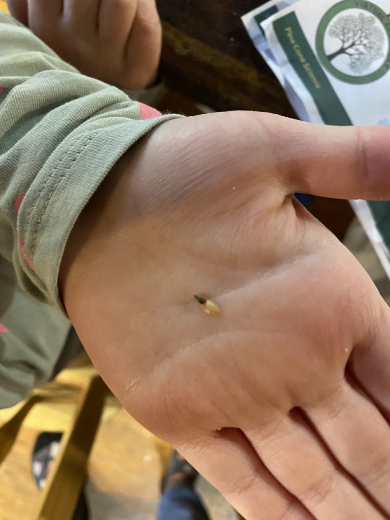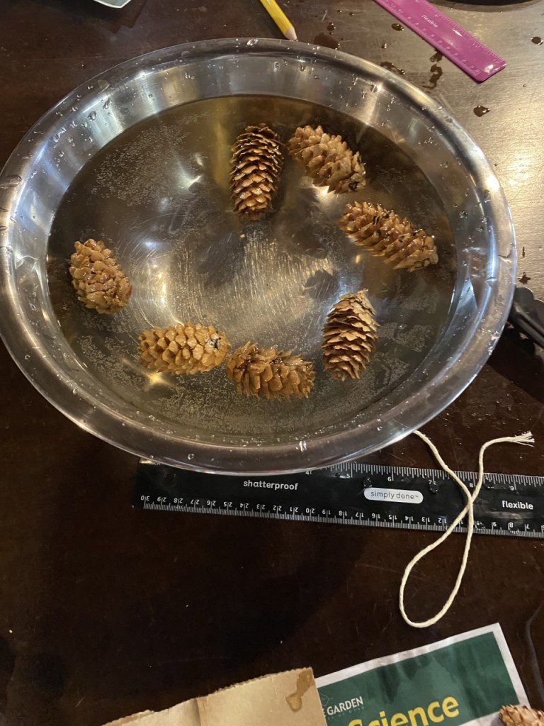 Excitement of Discovery!: With the growing interest in pinecones our teacher felt pinecones could be the avenue for more cross curricular learning. This was our opportunity to introduce rulers, measurements, inches, circumference, and length all while exploring our pinecones dry, wet, room temperature, and cold. During this exploration we finally found seeds! The energy was so HIGH! We then planted our own pinecone seeds!