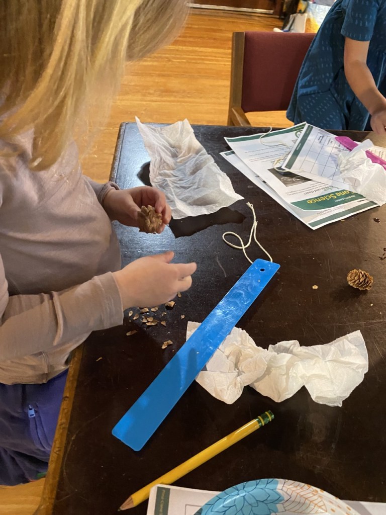 Community Engagement: PBE promotes learning and engagement with our community and connections to our environment! We are lucky to learn about the many organizations working right here in Big Cottonwood Canyon to engage and educate the people of Salt Lake City, UT. Cottonwood Canyons Foundation led a great trip at Spruces Campground, just down the canyon from our location at the Wasatch Mountain Lodge. There we learned more about the history of the Wasatch Nursery, got to see a spruce gall, and learned about the difference between male and female pinecones. The week prior we tried to find as many pinecones as possible around our school to extract a seed. Revisiting and learning more about pinecones was a huge hit!